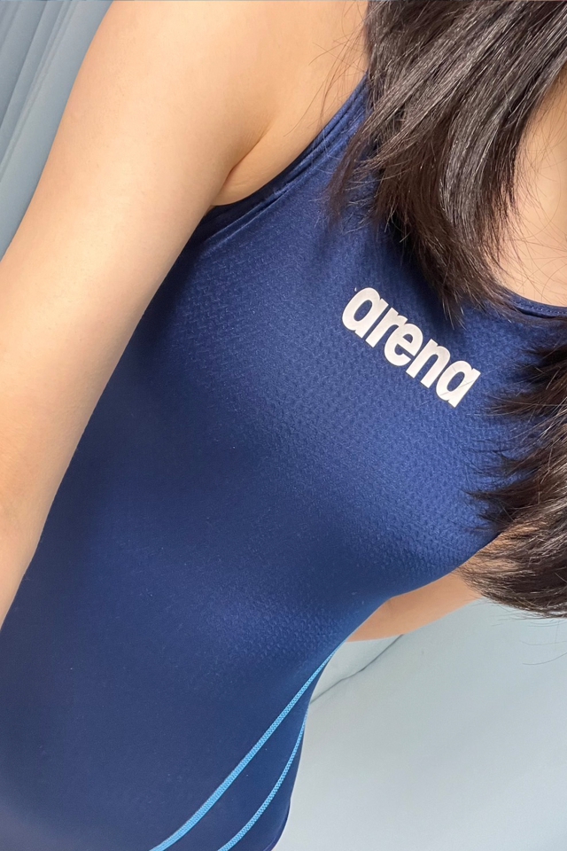 スラっと伸びた手足、競泳水着がかみ合うボディ!!